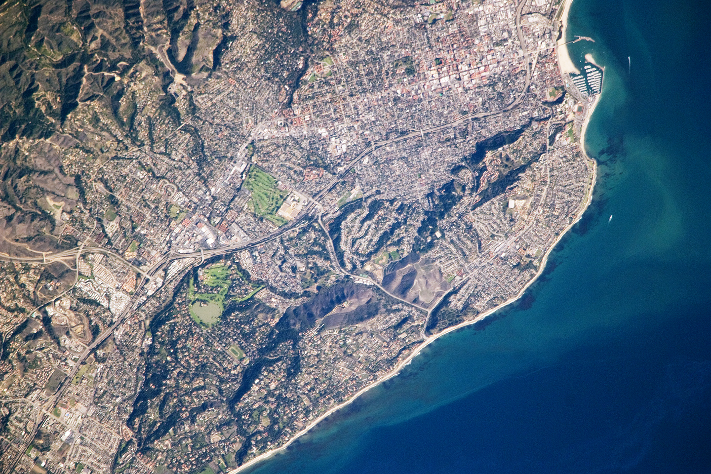 This detailed astronaut photograph highlights the Santa Barbara, California, metropolitan area, sometimes called the “American Riviera.” The geographic setting of the city—between the Santa Barbara Channel to the south and the steep Santa Ynez Mountains to the north—and its year-round mild climate evoke the Mediterranean Riviera. The city was officially founded as a Spanish mission in 1786, and it was incorporated into the United States from Mexico in 1848 following the Mexican-American War.