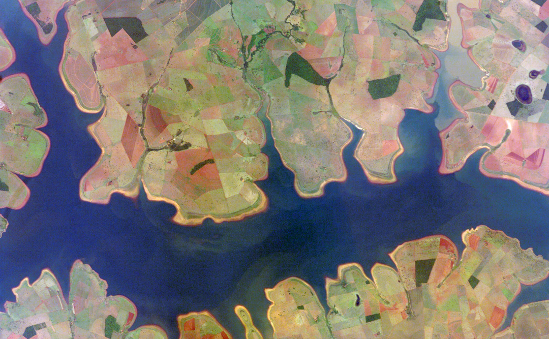 The São Simão Reservoir, near the confluence of the Rio Paranaiba and Rio Verde in Brazil, is the featured subject in a milestone image of Earth. This colorful, patchwork image is the 300,000th image of Earth downlinked from the International Space Station (ISS). The astronaut photography collection now includes more than 745,000 images of Earth taken by astronaut crews, beginning with the Mercury missions in 1961 and continuing to the present day on the ISS.