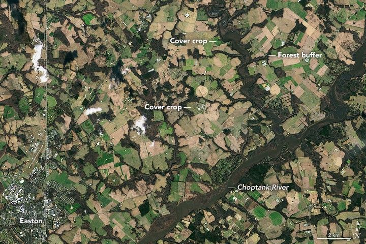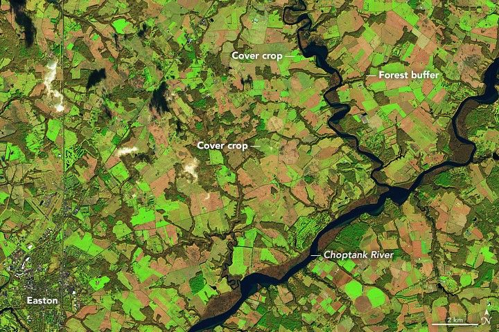 While most of their cover crop work happens on the ground, farmers get some help from space. Scientists at the USDA-Agricultural Research Service, the U.S. Geological Survey, and the Maryland Department of Agriculture are using data and imagery collected by satellites to monitor cover crop performance, to determine how effective the crops are in protecting the Bay, and to develop strategies that maximize benefits to growers and the environment while minimizing costs.
