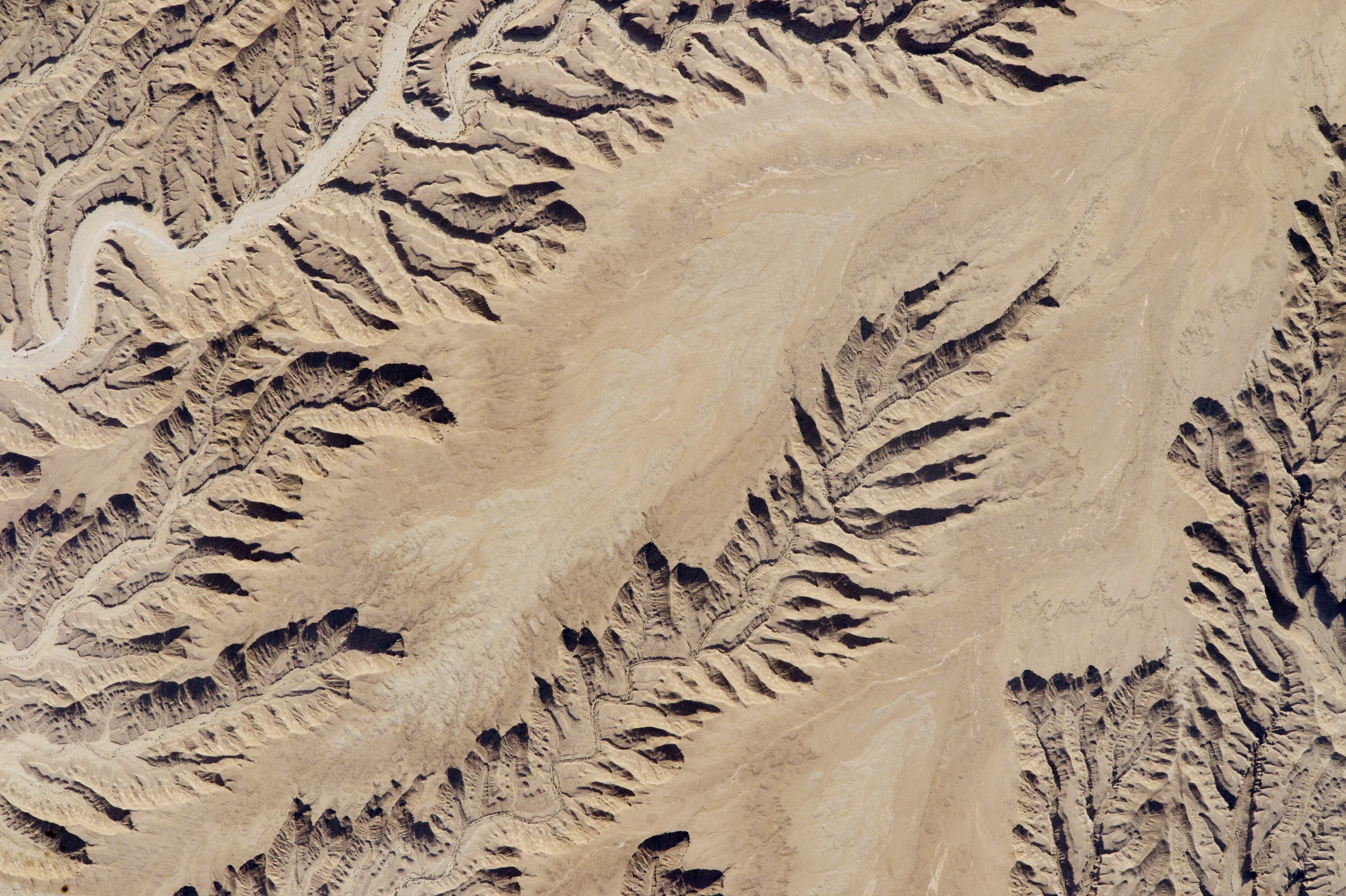 Crews aboard the International Space Station are trained to use low sun angles to add a three-dimensional effect to flat landscapes, a skill that is well illustrated by this image of central Saudi Arabia. The main river (upper left), located 120 kilometers (75 miles) south of the capital city Riyadh, has eroded its bed down into the rock layers, making a small canyon 250 meters (820 feet) deep. This in turn has led all of its tributaries to dig their own canyons, resulting in an elaborate, leaf-like pattern that casts shadows in the late afternoon sun. For scale, the area shown is just 12.5 kilometers (7.7 miles) across.