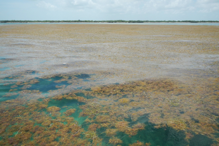 Led by researchers from the University of South Florida (USF) College of Marine Science, the team confirmed that the belt of brown macroalgae called Sargassum can grow so large that it blankets the surface of the tropical Atlantic Ocean from the west coast of Africa to the Gulf of Mexico. This happened in 2018 when more than 20 million tons of Sargassum—heavier than 200 fully loaded aircraft carriers—floated in surface waters and wreaked havoc on shorelines in the tropical Atlantic, the Caribbean Sea, and the Gulf of Mexico.