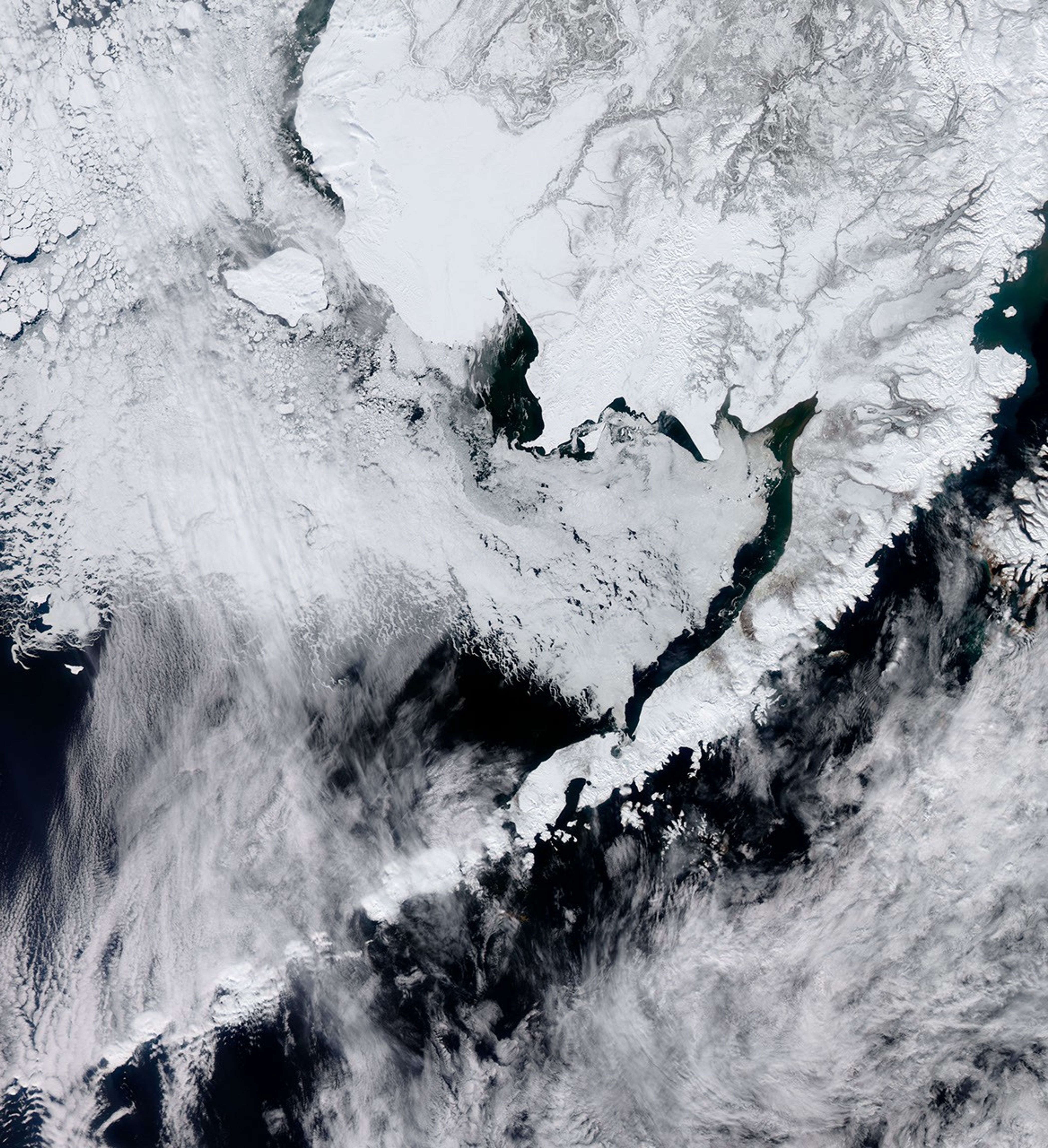 NASA Earth Observatory image by Jesse Allen, using data from the Land Atmosphere Near real-time Capability for EOS (LANCE). Caption by Michon Scott with information from Walt Meier, National Snow and Ice Data Center.