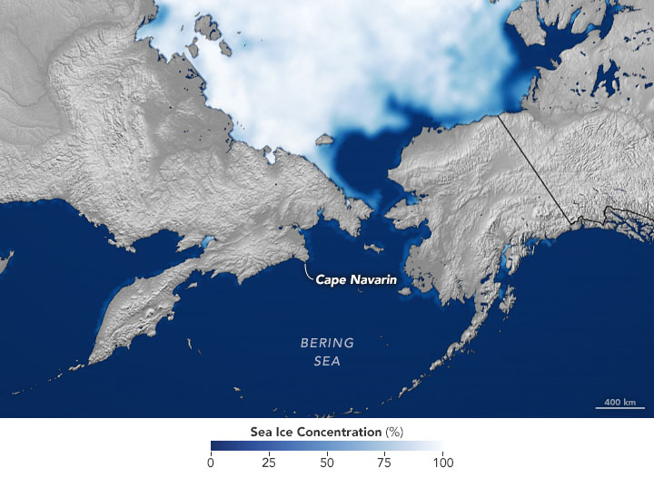 - NASA Earth Observatory (2018, May 3) Historic Low Sea Ice in the Bering Sea.