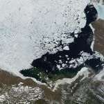 In the first half of June 2012, the Beaufort Sea was a “hotspot” of rapid retreat, driven by a high-pressure pattern over the region that kept skies clear at the very time of year when sunlight lasts the longest. In addition, larger-scale climate patterns in early June 2012 favored ice retreat along the coastlines of Alaska and Siberia. As of June 18, temperatures were above freezing over much of the sea ice in the Arctic, and snow had melted earlier than normal, leading to warming on land.