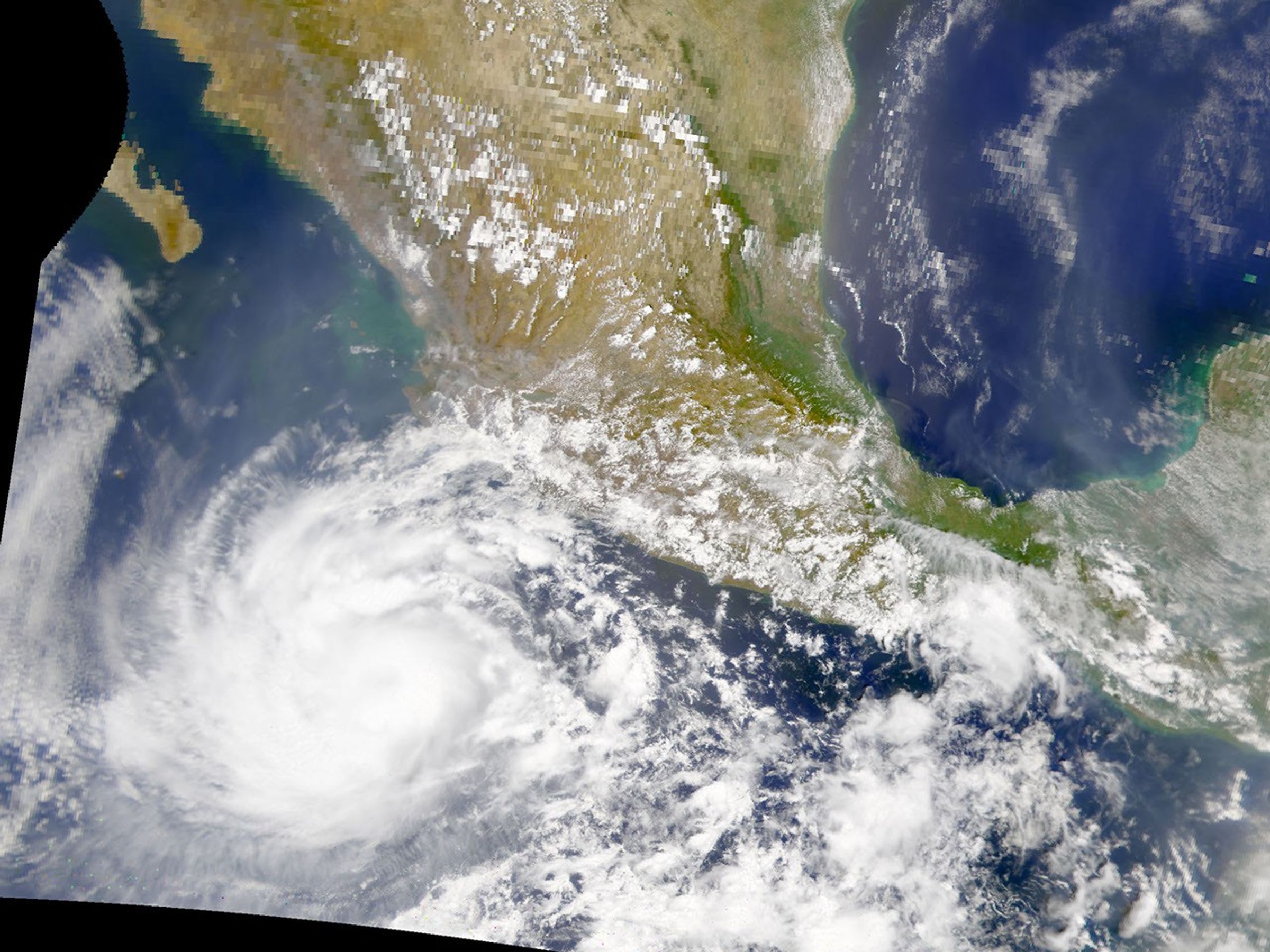 The year’s first Northeast Pacific hurricane, Aletta, appears in this imagefrom the Sea-viewing Wide Field-of-view Sensor (SeaWiFS). On May 24, 2000 thehurricane was spinning 300 miles off the coast of Mexico with sustained winds of80 miles per hour and gusts up to 100 miles per hour.