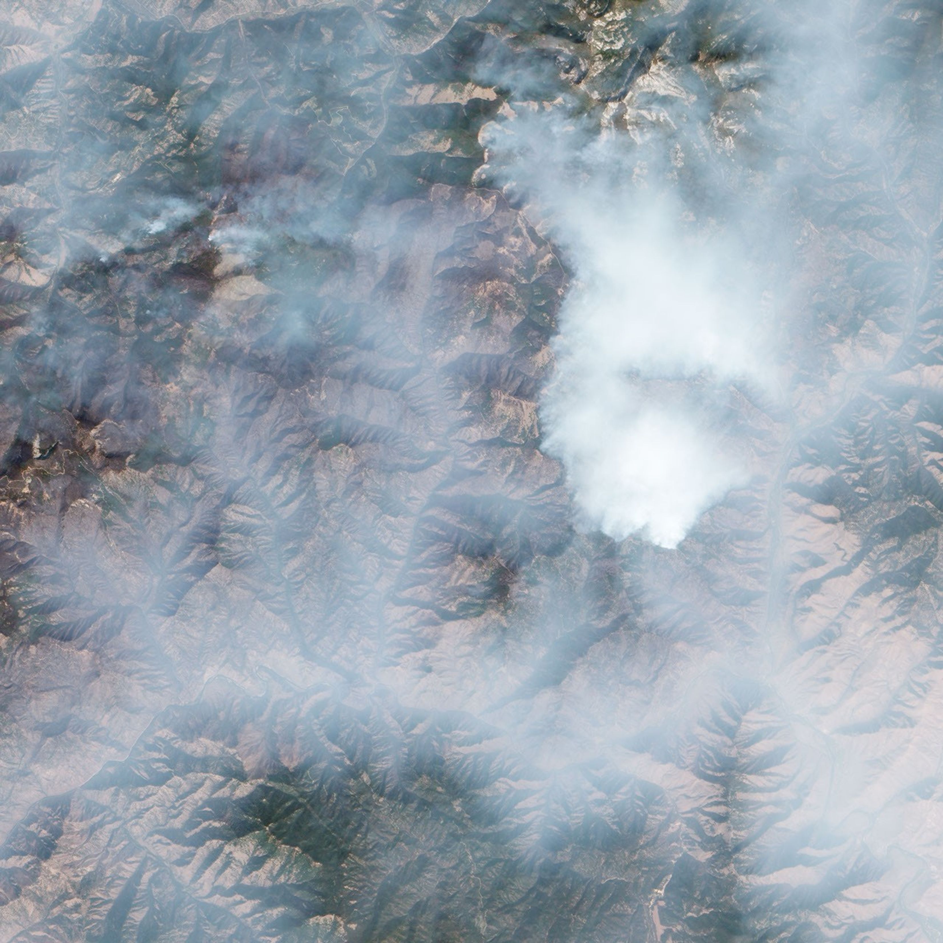 Sparked by lightning on July 30, 2012, the Mustang Complex was just one of numerous wildfires burning through dense stands of ponderosa pine forests in central Idaho in September. At times, the smoke was so heavy that authorities were forced to close roads because of poor visibility.