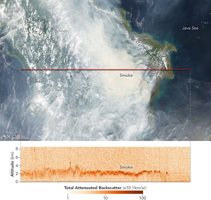 Knowing the height of a smoke plume is critical for atmospheric scientists and meteorologists as they develop models to predict where smoke will blow, explained Michael Tosca, an atmospheric scientist at NASA’s Jet Propulsion Laboratory. In many parts of the world, fires can loft smoke 5 or more kilometers (3 miles) into the air, and occasionally as high as 10 kilometers. But Tosca has found that smoke from Indonesian fires often remains relatively low in the atmosphere—between the surface and 3 kilometers.