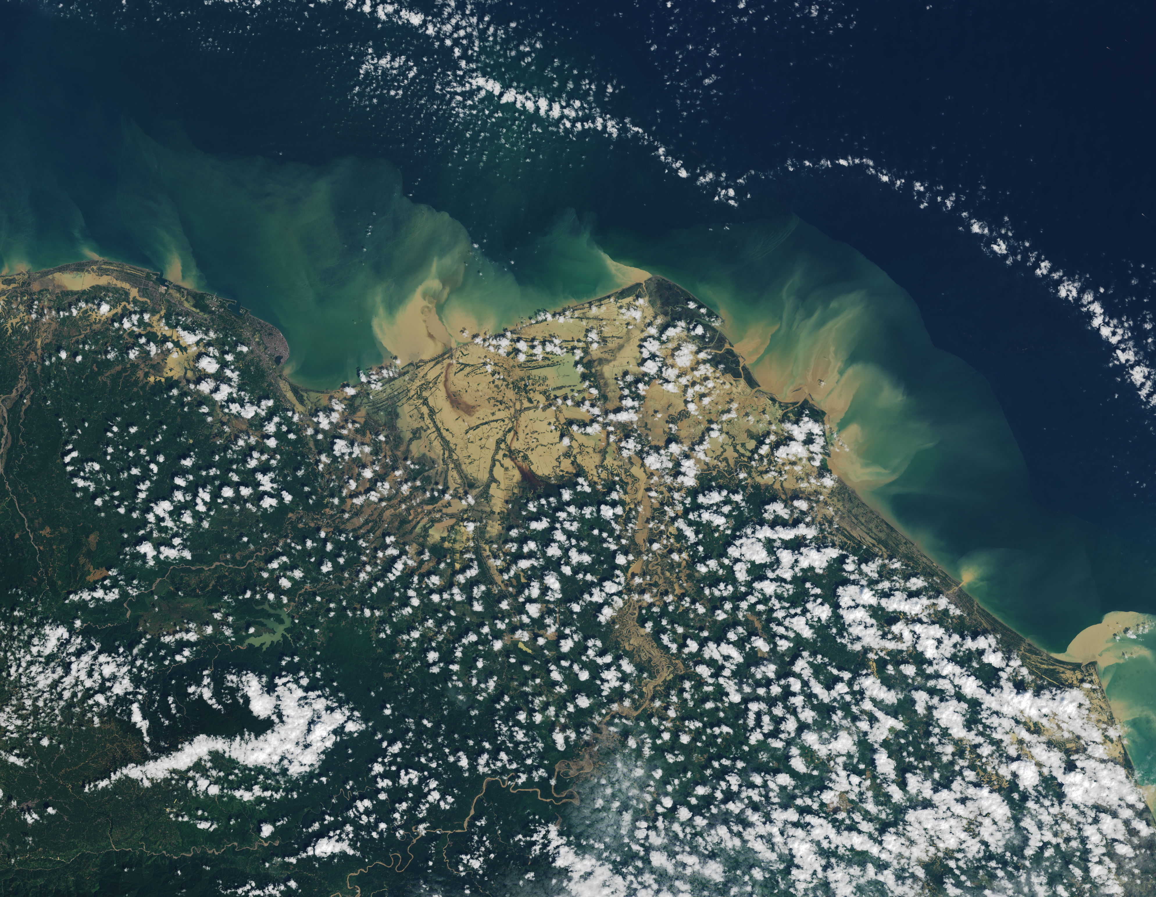 The OLI-2 (Operational Land Imager-2) on Landsat 9 captured this image of flooding in Aceh and North Sumatra provinces on November 30, 2025. Muddy sediment-filled water appears to have swamped much of Lhoksukon, a town of 40,000 people, and several surrounding villages.