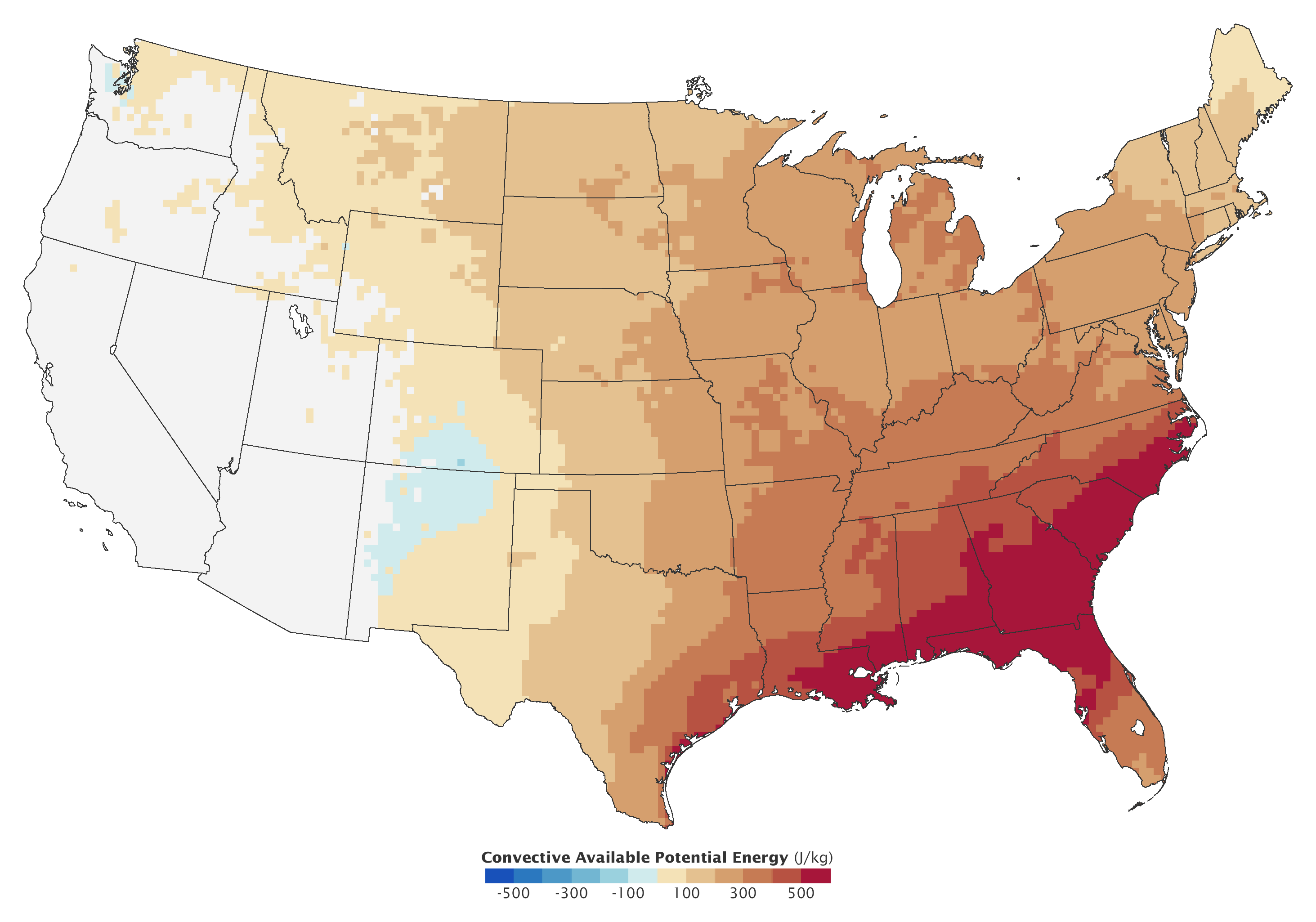 “CAPE can provide storms with the raw fuel to produce rain and hail, and vertical wind shear can pull and twist weak storms into strong, windy ones,” explained Harold Brooks, a meteorologist at NOAA’s National Severe Storms Laboratory.