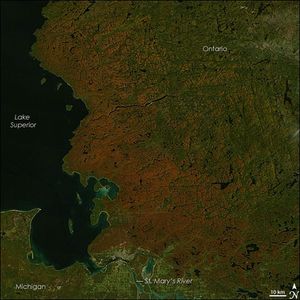 Jakubauskas explains that satellite remote sensors can enable scientists to monitor large areas rather quickly and efficiently and to observe areas that are difficult to reach from the ground. The Advanced Spaceborne Thermal Emission and Reflection Radiometer (ASTER) instrument on NASA’s Terra satellite, for example, can view a roughly 60 kilometers square area at a resolution of up to 15 meters per pixel. Higher-resolution remote sensing imagery can also be acquired by commercial satellites, such as Space Imaging’s IKONOS satellite, which views a much smaller area than ASTER but has approximately 1-meter resolution. Instruments on aircraft may also play an important role in tracking plant infestations as planes can allow scientists to collect high-resolution images while frequently revisiting any given location of interest.
