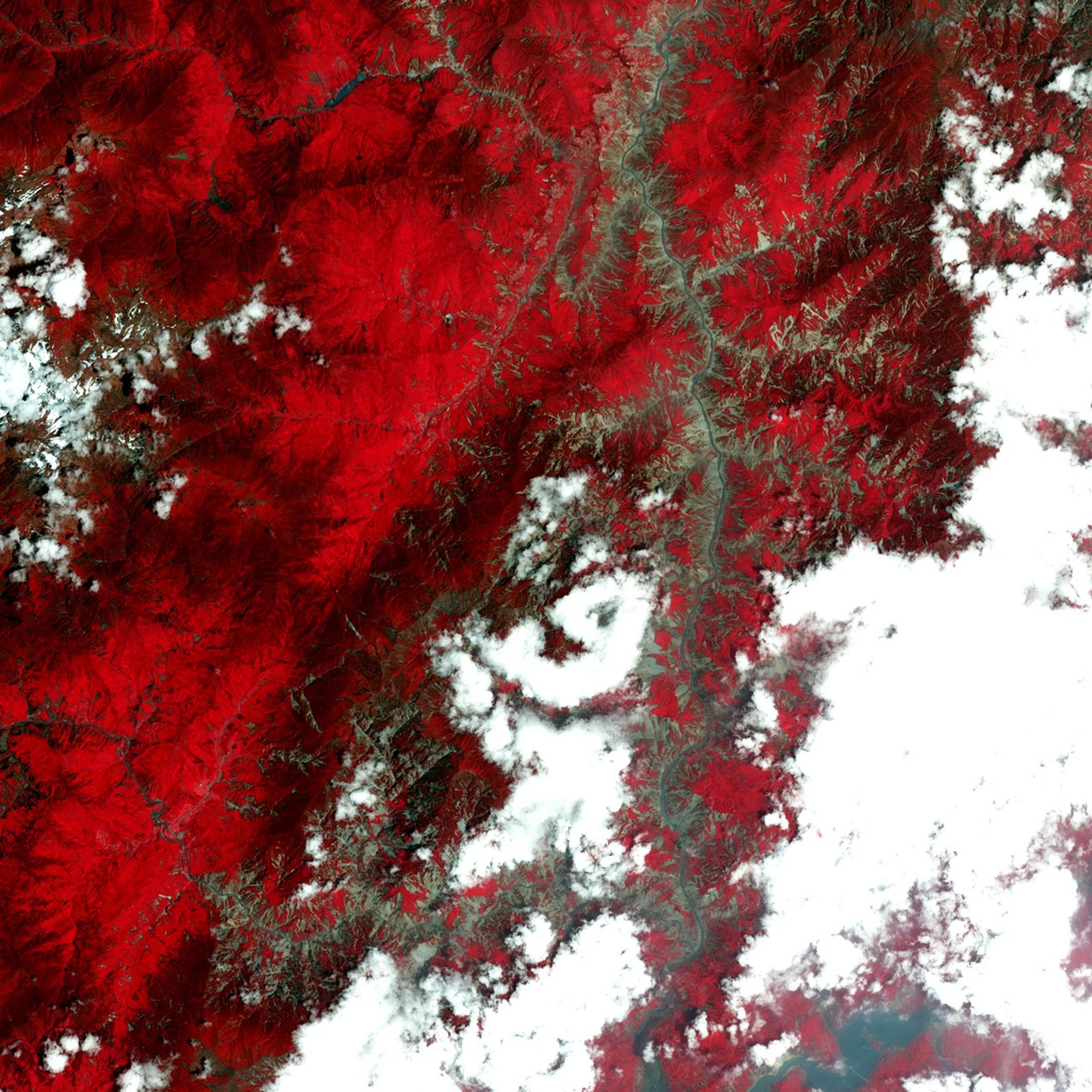 In the years between the acquisitions of these ASTER scenes, China underwent rapid industrialization and urbanization. As a result, some deforestation may have occurred in this region. Deforestation could account for some, but certainly not all, of the bare-ground areas, and it also could have exacerbated the effects of the earthquake-triggered landslides.