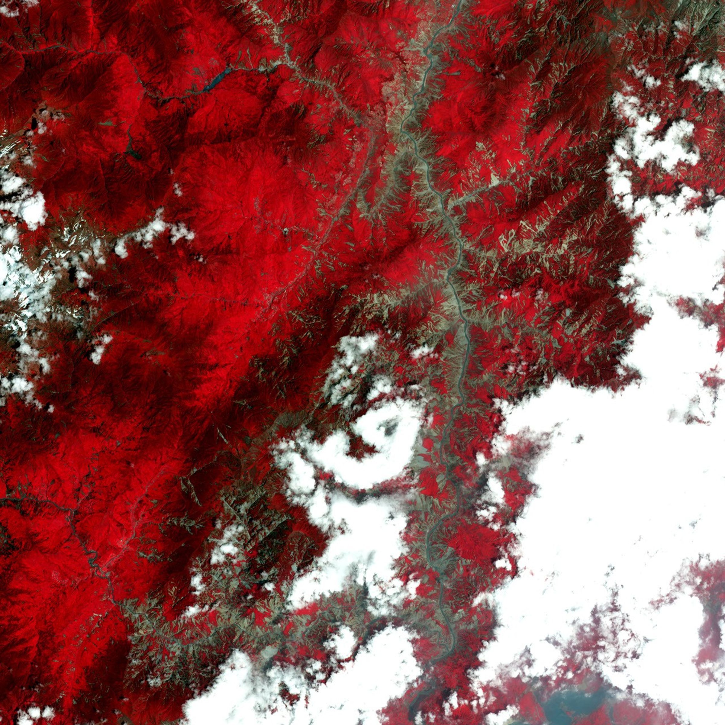 In the years between the acquisitions of these ASTER scenes, China underwent rapid industrialization and urbanization. As a result, some deforestation may have occurred in this region. Deforestation could account for some, but certainly not all, of the bare-ground areas, and it also could have exacerbated the effects of the earthquake-triggered landslides.