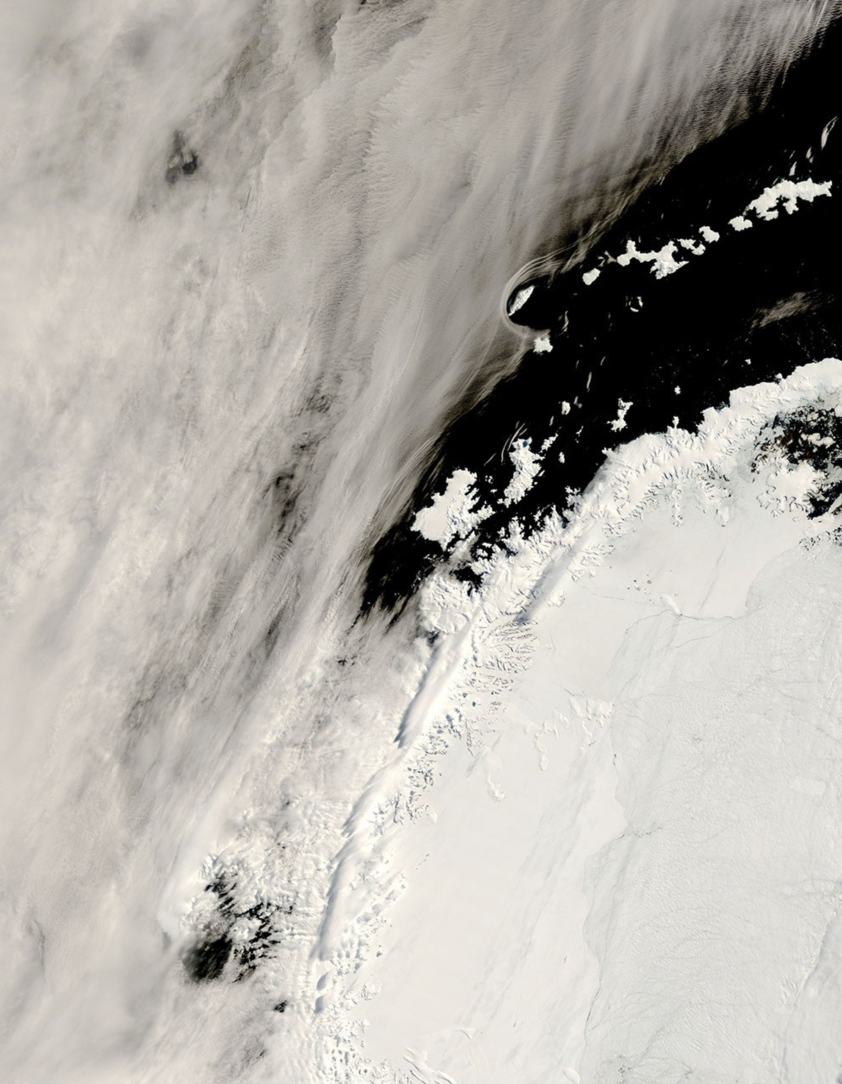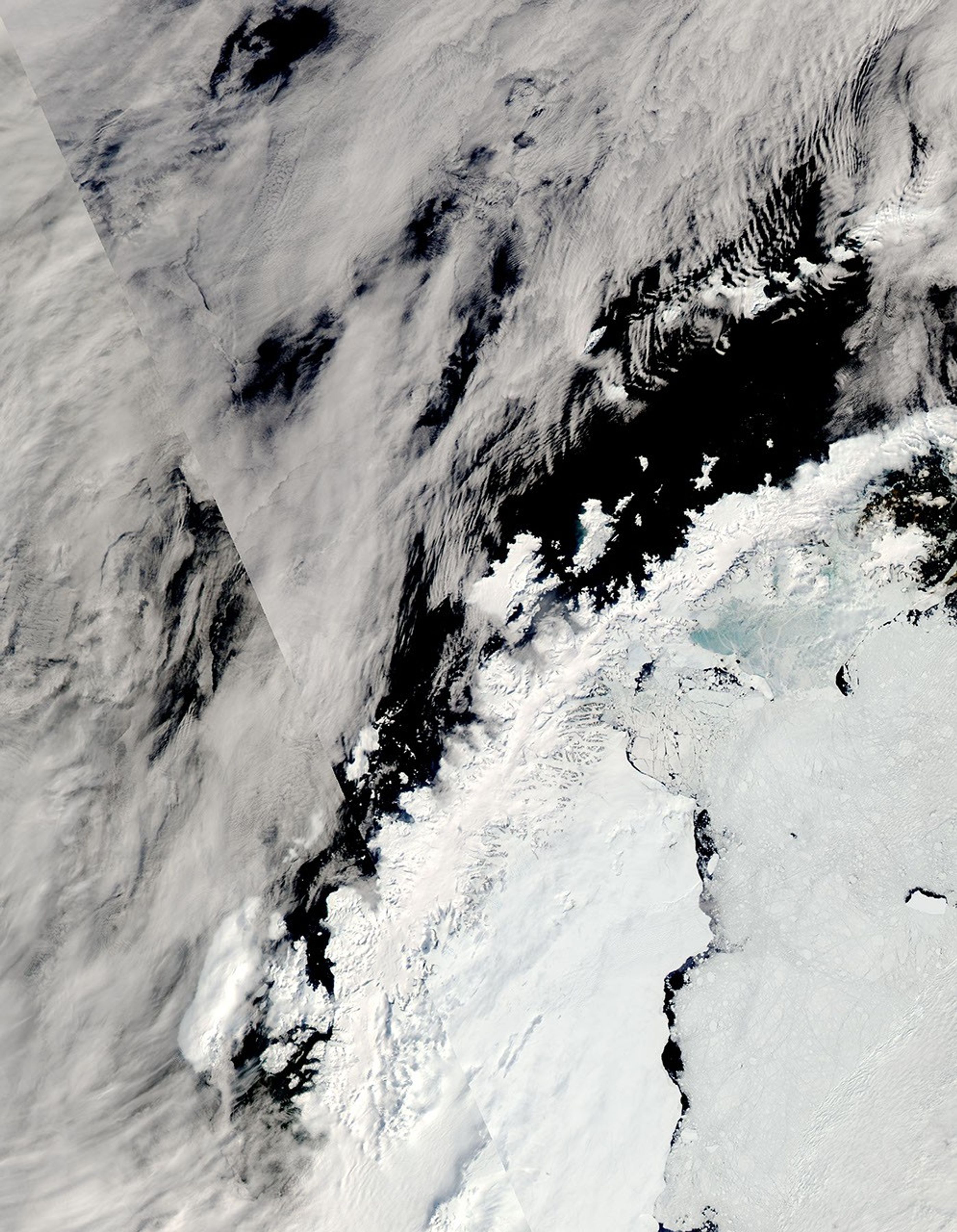 NASA image courtesy the MODIS Rapid Response Team at NASA GSFC. The Rapid Response Team provides daily images of this region. Caption by Michon Scott based on interpretation by Ted Scambos, National Snow and Ice Data Center.