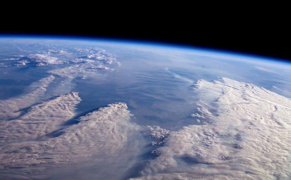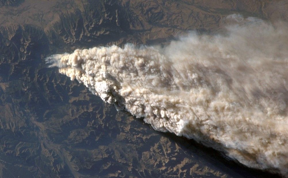 On August 13, 2007, while docked to the International Space Station (ISS), the crew members of Shuttle Mission STS-118 and ISS Expedition 15 reported seeing the smoke plumes from wide-spread fires across Idaho and Montana. The crew photographed and downlinked images of isolated plumes (top image) and regional views of the smoke (bottom image) from different perspectives. Strong westerly winds were driving the smoke eastward.
