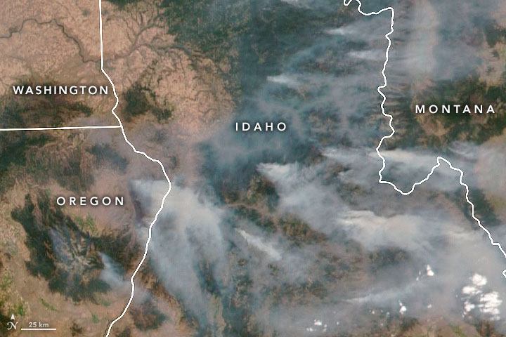 Just northwest of Salmon, Idaho, the Moose Fire has burned more than 125,000 acres (500 square kilometers) since it ignited on July 17, 2022. The blaze was 33 percent contained on September 9 and not expected to be fully contained until the end of October. Inciweb reported that the fire was caused by human activity, by far the predominant cause of wildland fire in the United States.