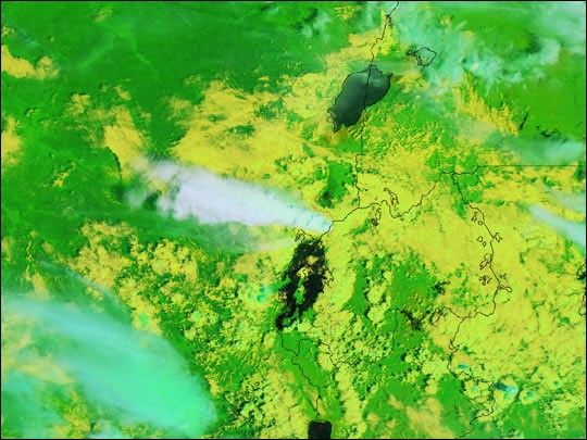 This Sea-viewing Wide Field-of-view Sensor (SeaWiFS) true-color image of Lake Michigan showsa lake effect where clear dry air moves eastwardfrom Wisconsin, picking up moisture as it traverses the lake and forming dense clouds by the time it reaches Lake Michigan's eastern shore. The scene was acquired on January 17, 2002.