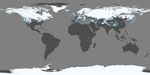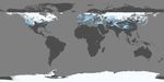 Very light blue shows places where at least a trace of snow was observed, while white shows where the ground was 100 percent snow covered. South of the polar night boundary, dark gray means either “no snow” or “no data,” usually because of clouds. Inside the polar night boundary, MODIS cannot observe snow cover because there is not enough daylight. The animation shows monthly snow cover from February 2000 through February 2009.