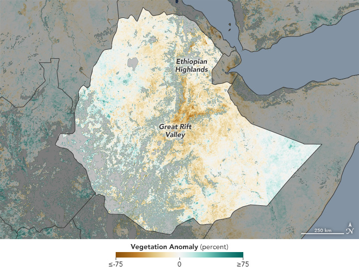 For now, satellite data can help show the conditions on the ground that are relevant for agriculture. Ethiopia is now in its secondary crop season—the “belg”—a short rainy season from March to May. Successful harvest of belg crops depends on adequate rainfall.