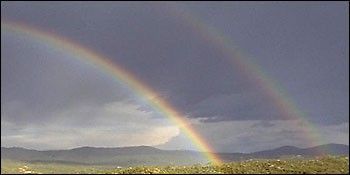 Though sunlight may appear white and nondescript, it consists of electromagnetic waves that have a wide range of wavelengths. One can separate these wavelengths by simply holding up a prism to sunlight, which causes light rays of shorter wavelengths to bend at larger angles. The various purples, blues, greens, yellows, and reds that emerge from the prism represent all the wavelengths of light that are visible to the human eye, which only detects wavelengths between 400 and 700 nanometers (billionths of a meter). The visible spectrum, however, accounts for just under half of the Sun’s total energy. Much of the Sun’s energy is made up of ultraviolet (UV) radiation, which has shorter wavelengths (higher energy levels) than visible light and extends off of the purple end of the visible spectrum. An even larger amount of this invisible energy can be found in the longer infrared wavelengths (lower energy levels) of light that extend off the opposite end of the visible spectrum.