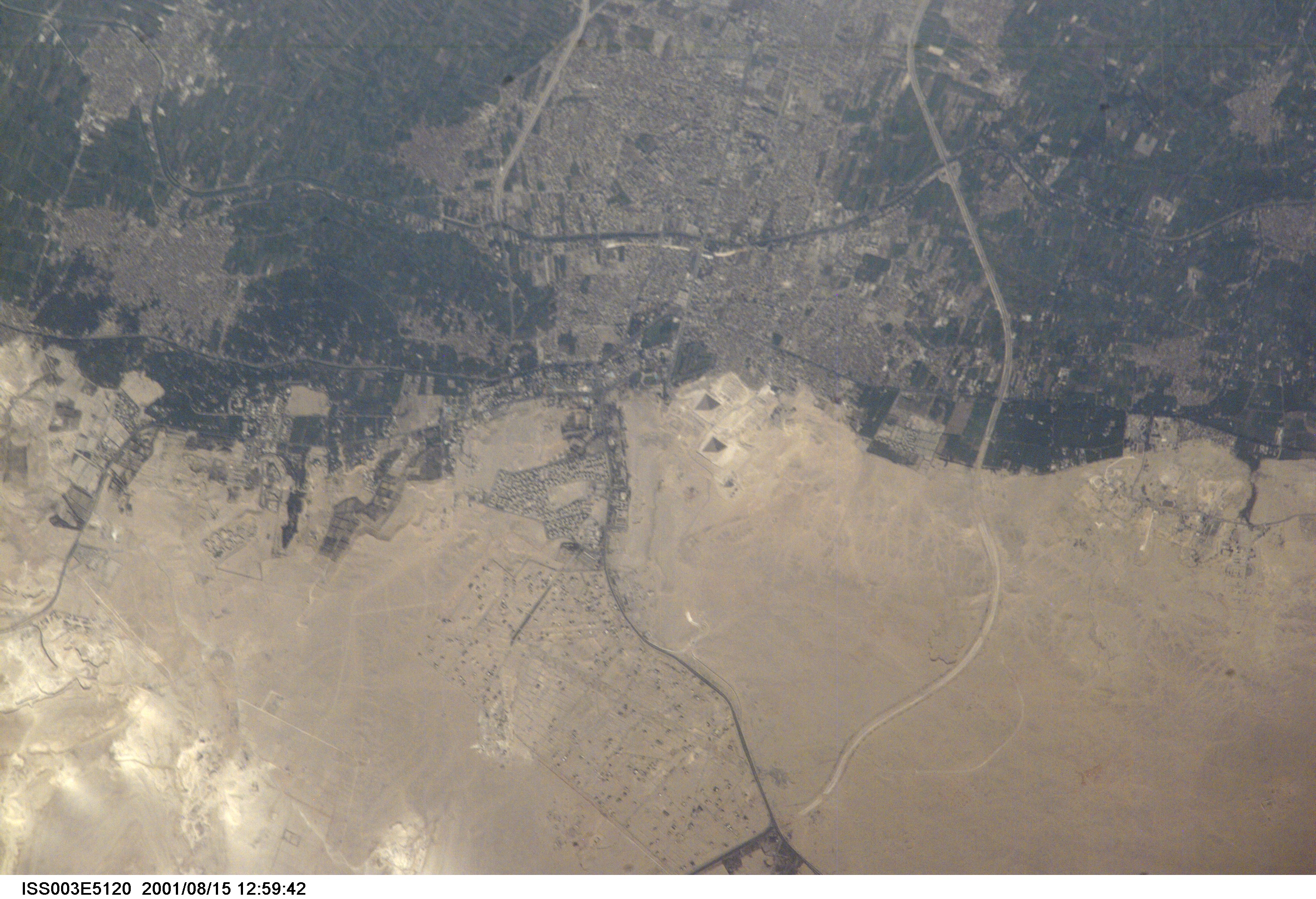 Although some commercial satellites, such as IKONOS, have imaged the Pyramids at Giza in greater detail (1 m resolution), this image highlights the potential of the International Space Station as a remote sensing platform. A commercial digital camera without space modifications was used to obtain this picture. Similarly, a variety of remote sensing instruments developed for use on aircraft can potentially be used from the Space Station.