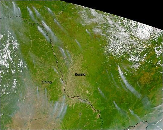 MODIS image of the Bering Sea, Bering Strait and southern Arctic Ocean acquired 7 May 2000. Image generated from MODIS band 2 (0.85 µm) at 250 m spatial resolution. Detailed structure and leads in the ice pack are apparent. Ice flow from the Bering Strait southward to the Bering Sea is seen in great detail.