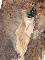 On January 10, 2011, the Advanced Land Imager (ALI) on NASA’s Earth Observing-1 (EO-1) satellite captured this natural-color image of the north end of the Suguta Valley, including Logipi Lake, which seasonally fills just a small portion of the valley. Derived from Shuttle Radar Topography Mission (SRTM) data, the white line around the valley in the top image approximates the Lake Suguta shoreline when water levels were at their highest.