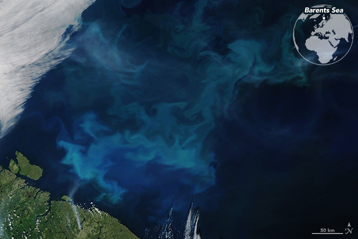 - NASA Earth Observatory (2011, August 18) Bloom in the Barents Sea.