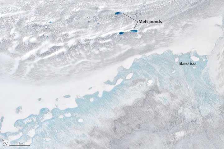 NASA Earth Observatory images by Joshua Stevens , using Landsat data from the U.S. Geological Survey . Story by Kathryn Hansen with science review by Xavier Fettweis/U. Liège, and Christopher Shuman/NASA/UMBC.