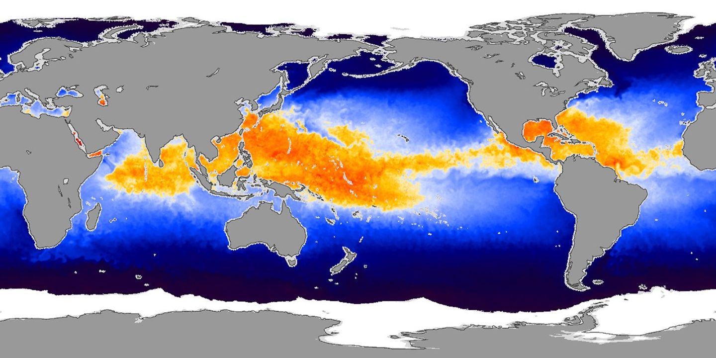 NASA image created by Jesse Allen, Earth Observatory, using Sea Surface Temperature data from the Advanced Microwave Radiometer for EOS (AMSR-E), provided courtesy of Chelle Gentemann, Remote Sensing Systems.