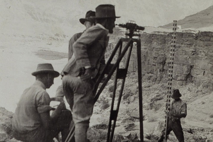 A century ago, surveyors measured the height of land with spirit levels—part carpenter’s level and part telescope. For instance, the photograph below shows surveyors using a spirit level to measure elevation in Glen Canyon in 1921.