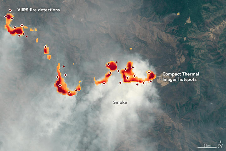 “We ended up getting these amazing images of fires at times of the day when we don’t usually get them,” said Morton. Fire researchers are eager to have more views of fires around dawn and dusk, which are sometimes missed by MODIS and VIIRS.“It was a reminder of how much critical science we could do if we had a whole fleet of sensors like CTI giving us such detailed measurements multiple times a day.”