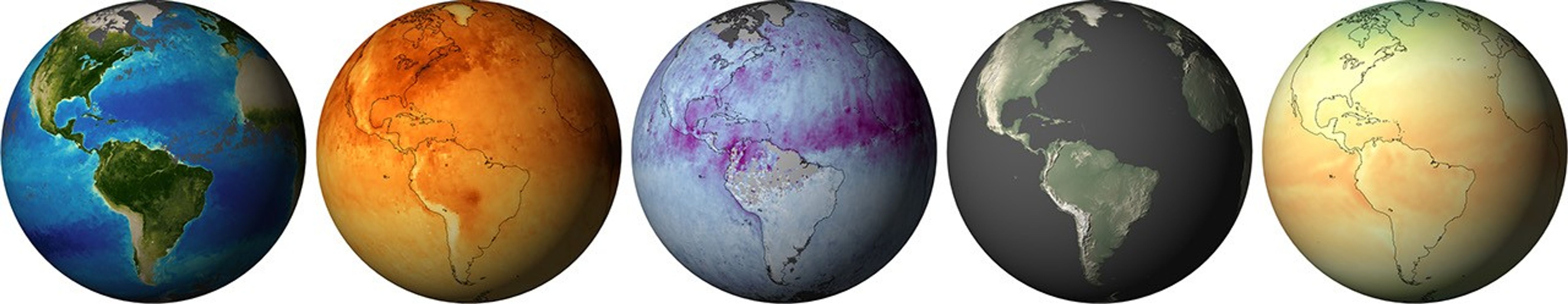 NASA images by Marit Jentoft-Nilsen (image) and Robert Simmon (globes). Based on data from the MODIS, MOPITT, MISR, ASTER, and CERES science teams. Caption by Rebecca Lindsey and Holli Riebeek.