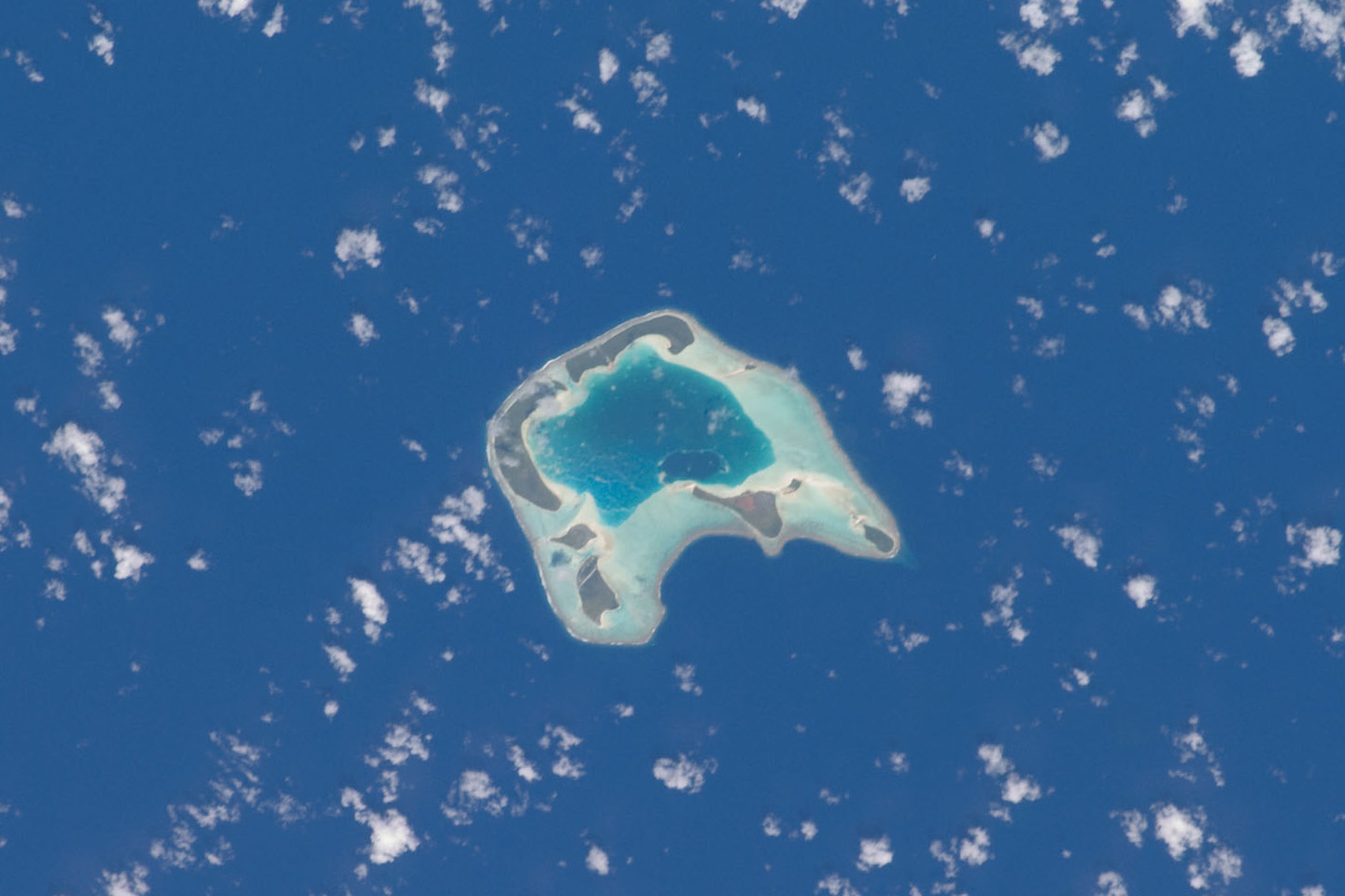 Tetiaroa Island is part of the Society Islands archipelago in the southern Pacific Ocean, one of several island clusters in French Polynesia. Tetiaroa is an atoll comprised of thirteen small islets (or motus). This astronaut photograph illustrates the typical circular appearance of a fully developed atoll.