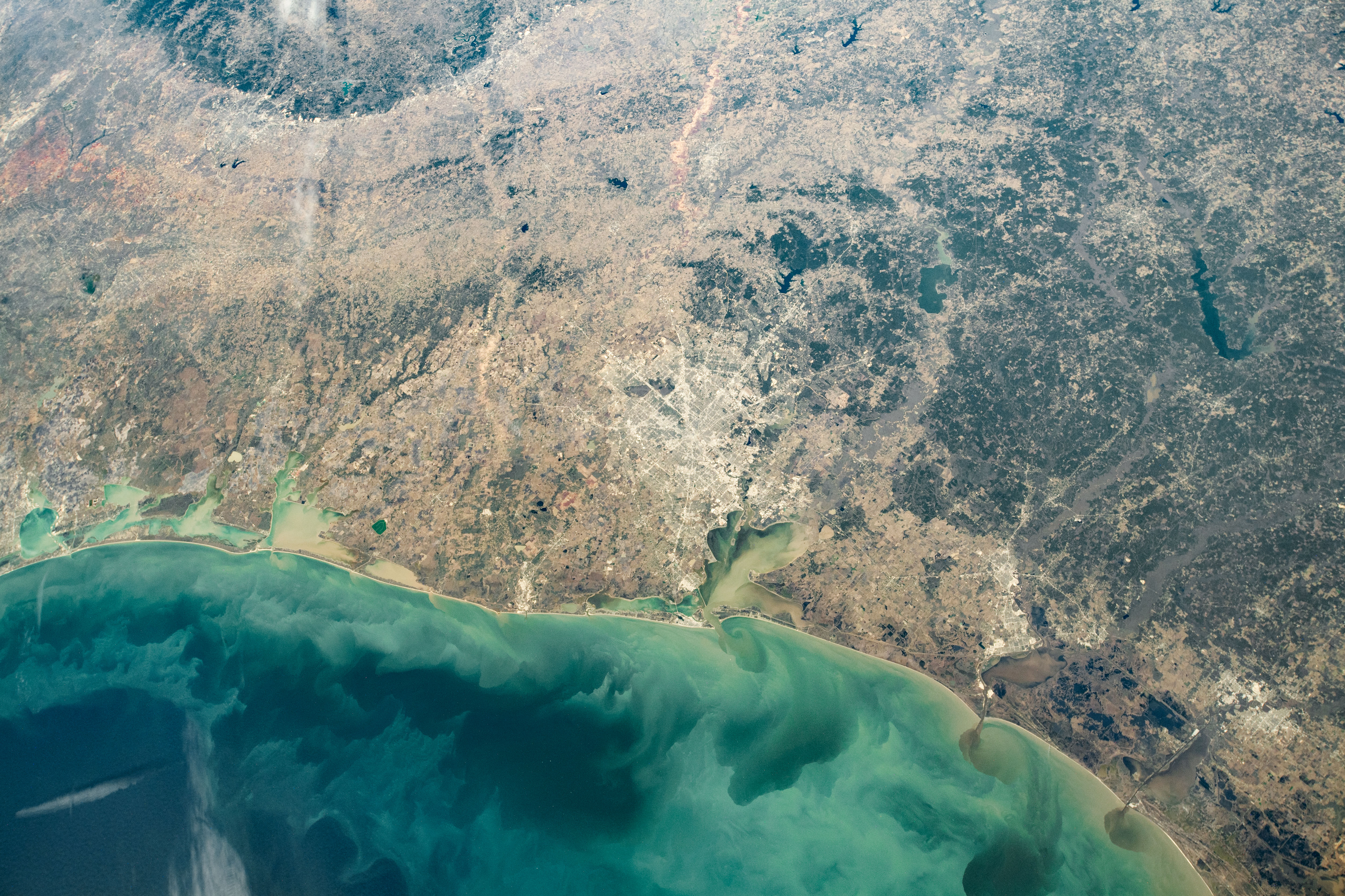 An astronaut onboard the International Space Station (ISS) took this photo of the Texas Gulf Coast. The field of view is about the same as what astronauts see with their unaided eyes from station windows. The photo centers on Houston, home to NASA Johnson Space Center, where astronauts live and train. They get part of their education from the Earth Science and Remote Sensing Unit, which works with them to achieve the diverse science objectives of astronaut photography of Earth.
