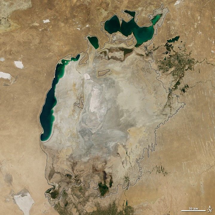 "This is the first time the eastern basin has completely dried in modern times," said Philip Micklin, a geographer emeritus from Western Michigan University and an Aral Sea expert. "And it is likely the first time it has completely dried in 600 years, since Medieval desiccation associated with diversion of Amu Darya to the Caspian Sea."