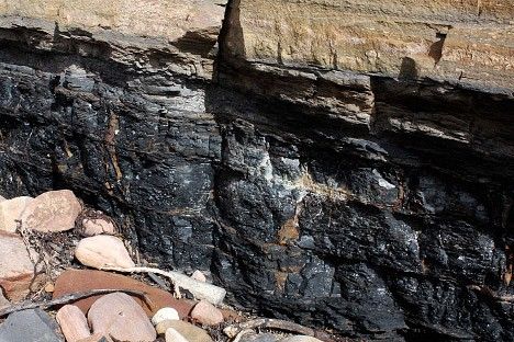 Only 80 percent of carbon-containing rock is currently made this way. The remaining 20 percent contain carbon from living things (organic carbon) that have been embedded in layers of mud. Heat and pressure compress the mud and carbon over millions of years, forming sedimentary rock such as shale. In special cases, when dead plant matter builds up faster than it can decay, layers of organic carbon become oil, coal, or natural gas instead of sedimentary rock like shale.
