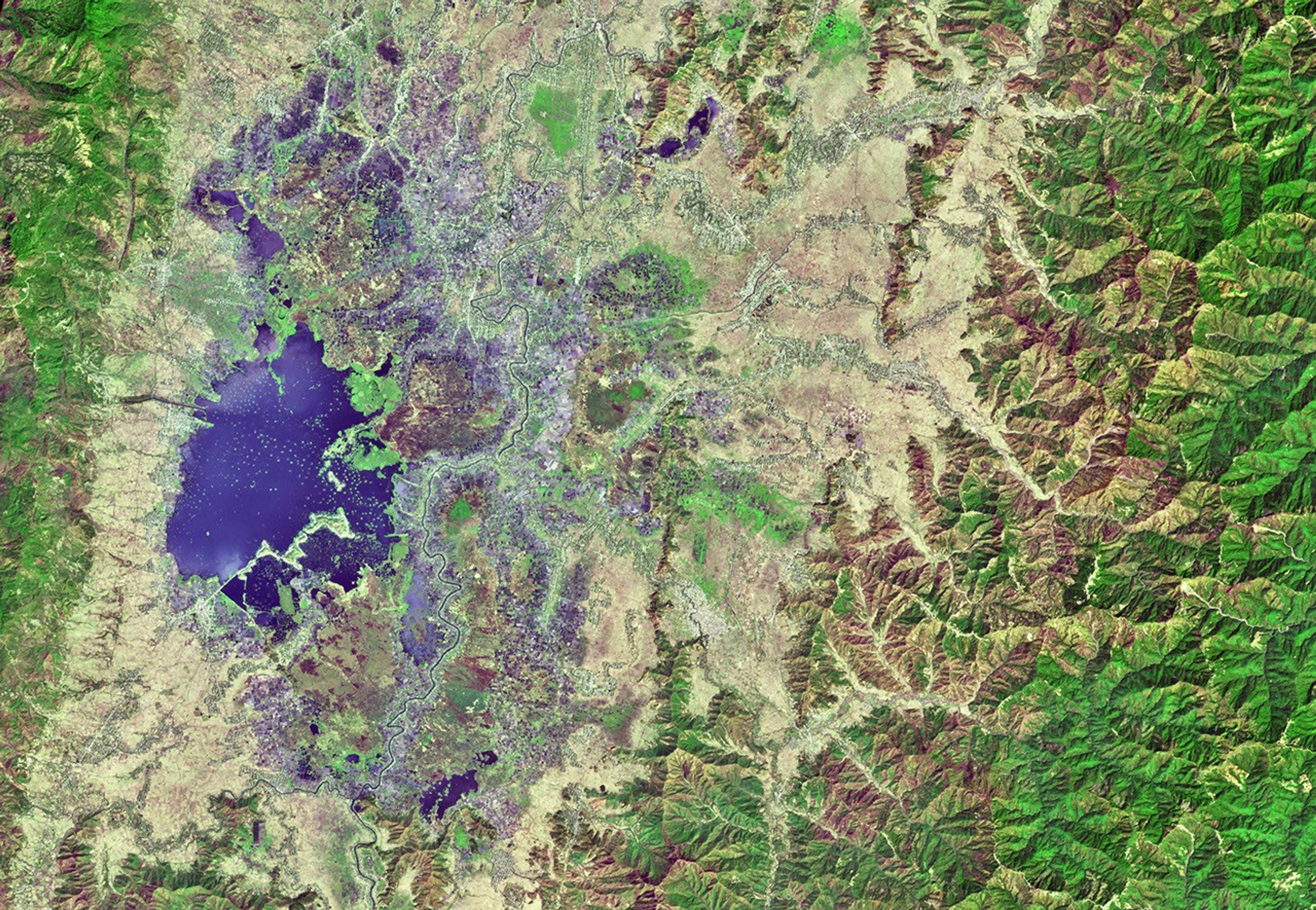 The top satellite images of Loktak Lake were acquired on March 19, 2018, by the Advanced Spaceborne Thermal Emission and Reflection Radiometer (ASTER) on the Terra satellite.