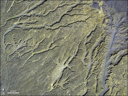 Where is the hottest place on Earth? Temperature records from weather stations give that distinction to El Azizia, Libya, which hit a sweltering 57.8 degrees Celsius (136 F) on September 13, 1922, but there have likely been hotter locations beyond the scattered network of weather stations. This image provides a more complete picture of the Earth’s temperature. The image was created from data collected by the Moderate Resolution Imaging Spectroradiometer (MODIS) on NASA’s Aqua satellite, which flies overhead at about 1:30 p.m. local time, close to the hottest part of the day. MODIS records land surface temperatures, which reflect how hot the ground is to the touch. As anyone who has walked barefoot across a sandy beach or a slab of concrete on a summer’s day can attest, the land underfoot is hotter than the air at head level. As a result, the temperatures shown here could be as much as 40 degrees Celsius hotter than the air temperatures recorded at weather stations.