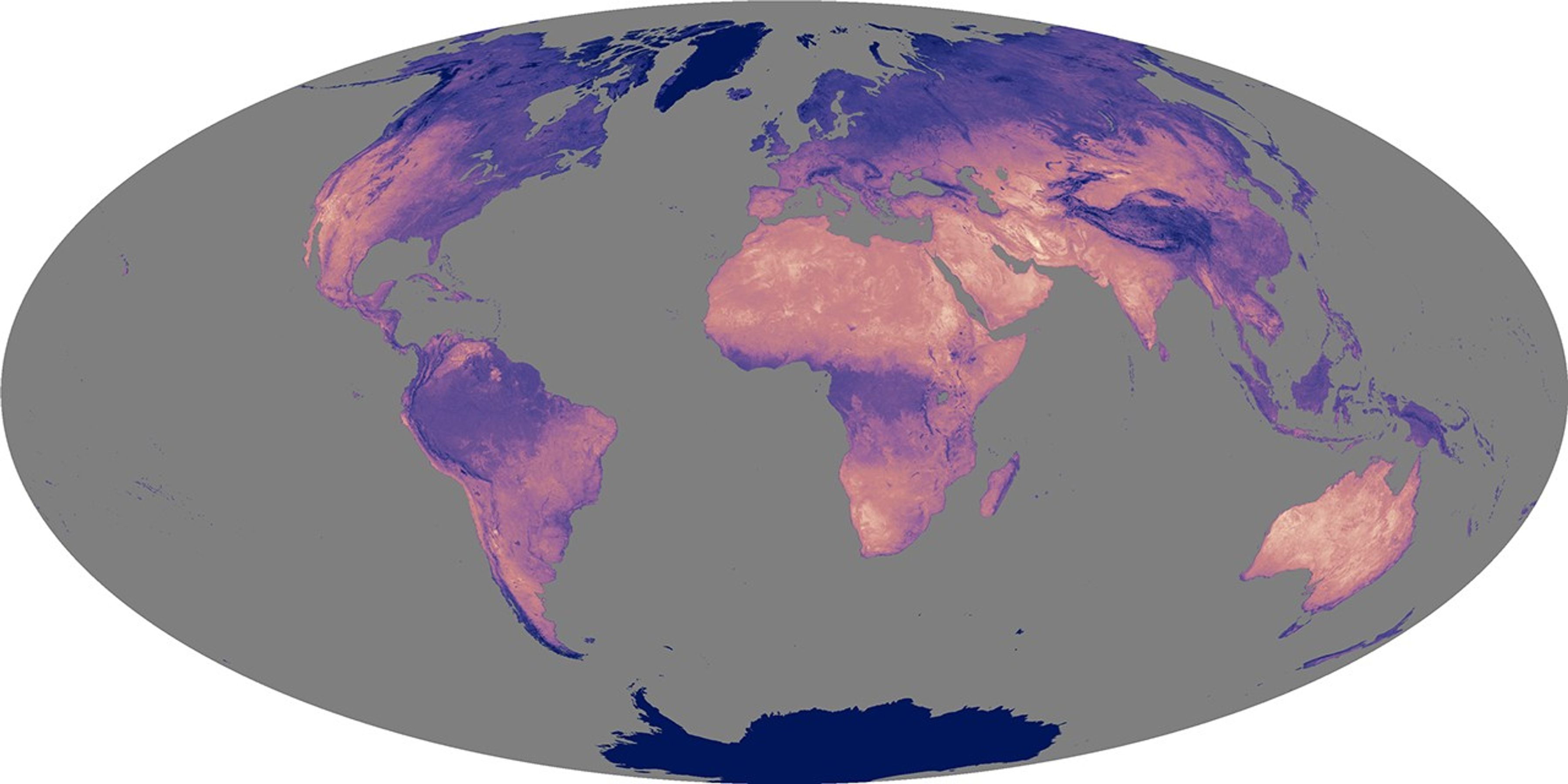 NASA image created by Jesse Allen, Earth Observatory, using data provided by Steven Running, Department of Ecosystem and Conservation Sciences, University of Montana.