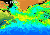 SeaWiFS captured the progression of the North Atlantic Bloom between March and June 1999. Images courtesy of the GSFC Earth Sciences DAAC’s North Atlantic Bloom