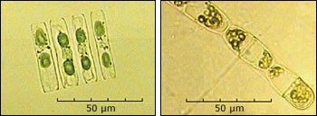 Different phytoplankton species take diverse forms, including Navicula vanhoeffenii (left) and Melosira juergensii (right). Images courtesy of NOAA’s Dominant Phytoplankton Taxa of the Arctic Seas (A new browser window will open.)