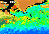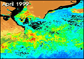 This SeaWiFS image shows average chlorophyll a concentration from October 1997 to April 2002. Image courtesy of the SeaWiFS Image Gallery