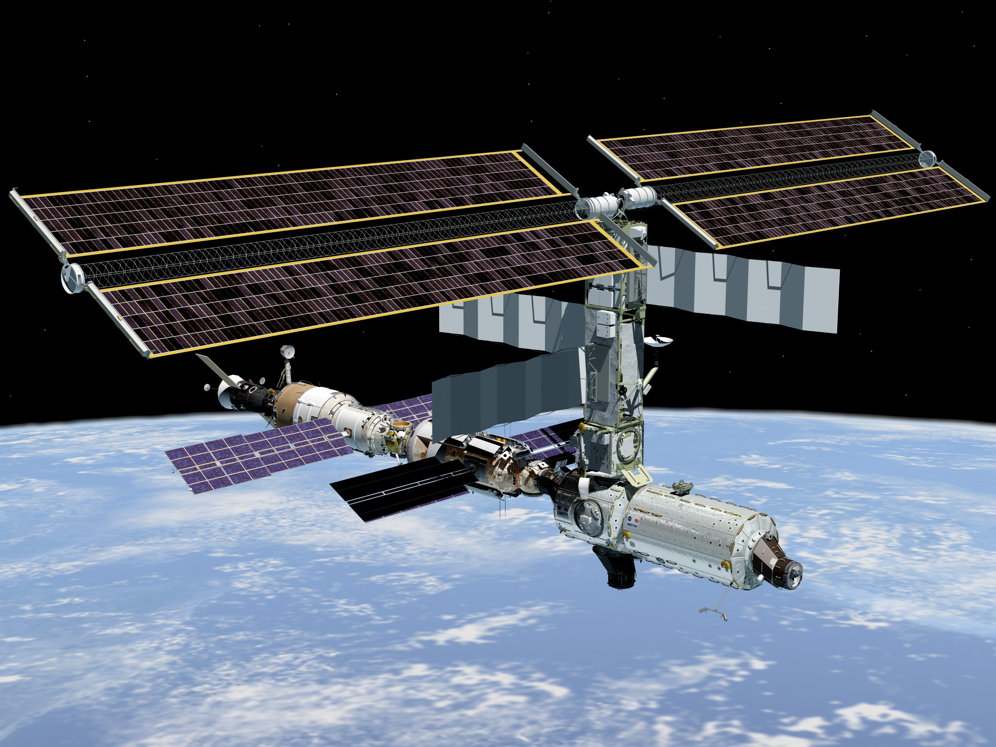 Artist’s rendering of the International Space Station (ISS) after installation of the U.S. Laboratory Destiny and itsnadir-viewing optical quality window during Space Shuttle Mission STS-98/Station Mission 5A in February 2001 (Image JSC2001e00360).