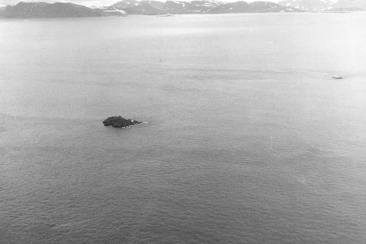The number of documented visitors to Landsat Island is limited. It took a few years after the discovery for hydrographers to verify the existence of the island. About 20 years later, David Gray of the Canadian Hydrographic Service visited the area by helicopter. He did not set foot on the island, but he took aerial photographs (including the one below) and tagged the location with the helicopter’s GPS. Gray was responsible for calculating Canada’s maritime boundaries so they could be correctly shown on nautical charts, and Landsat Island was one of a hundred points he was verifying.