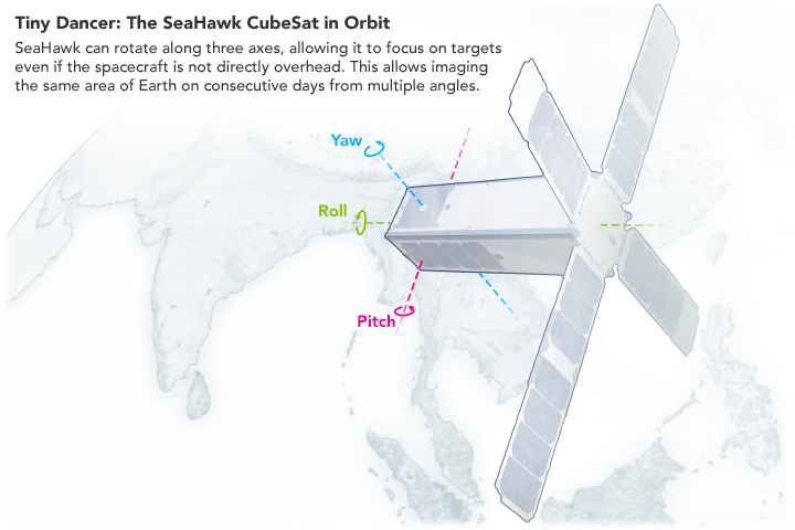 According to longtime NASA ocean scientist Gene Feldman, the team initially set out to prove that it is possible to collect scientifically sound ocean color data from a cubesat. Having achieved that over the past year, the SeaHawk team has raised its sights. They are now working to prove that they can gather observations of the same patch of water on multiple consecutive days.