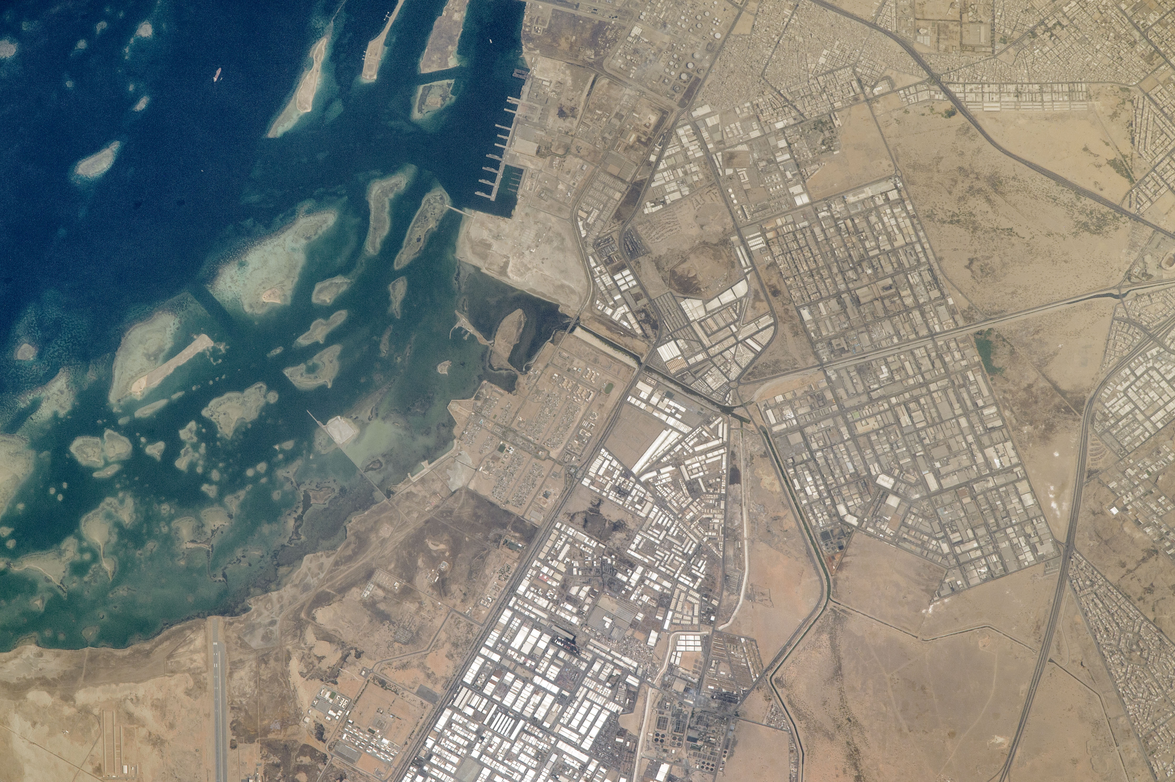 An astronaut aboard the International Space Station captured this photograph of part of Jeddah (sometimes spelled Jiddah), a major port city on the Red Sea coast of Saudi Arabia. Jeddah is the largest commercial center and port in the nation and, with more than three million people, is the second largest city by population (after the capital, Riyadh). Click here to see another astronaut photograph of the northern part of the city.