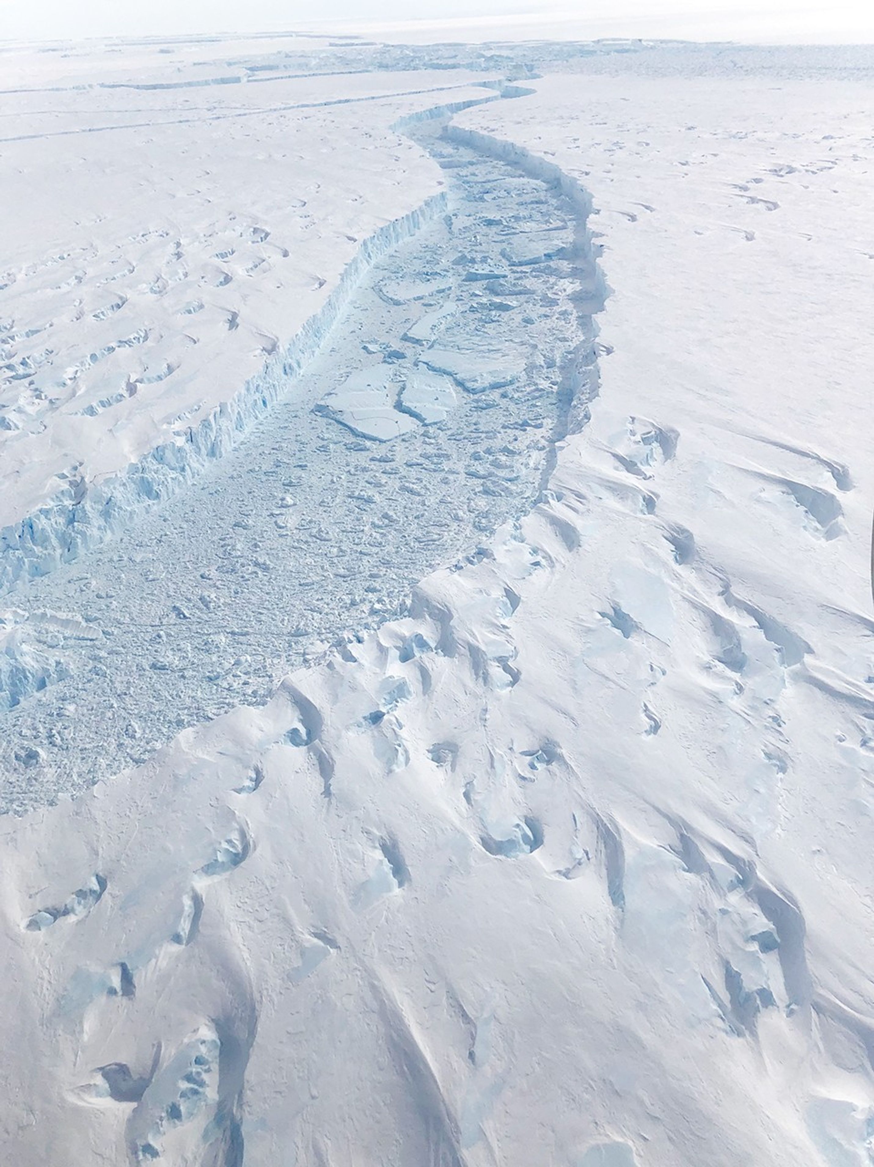 Large cracks are forming farther upstream from the ice front than ever before—even in the middle of the ice shelf, where scientists had never previously seen them grow. “This is indicative of a progressive collapse of the ice shelf,” said Eric Rignot, a glaciologist at NASA’s Jet Propulsion Laboratory.
