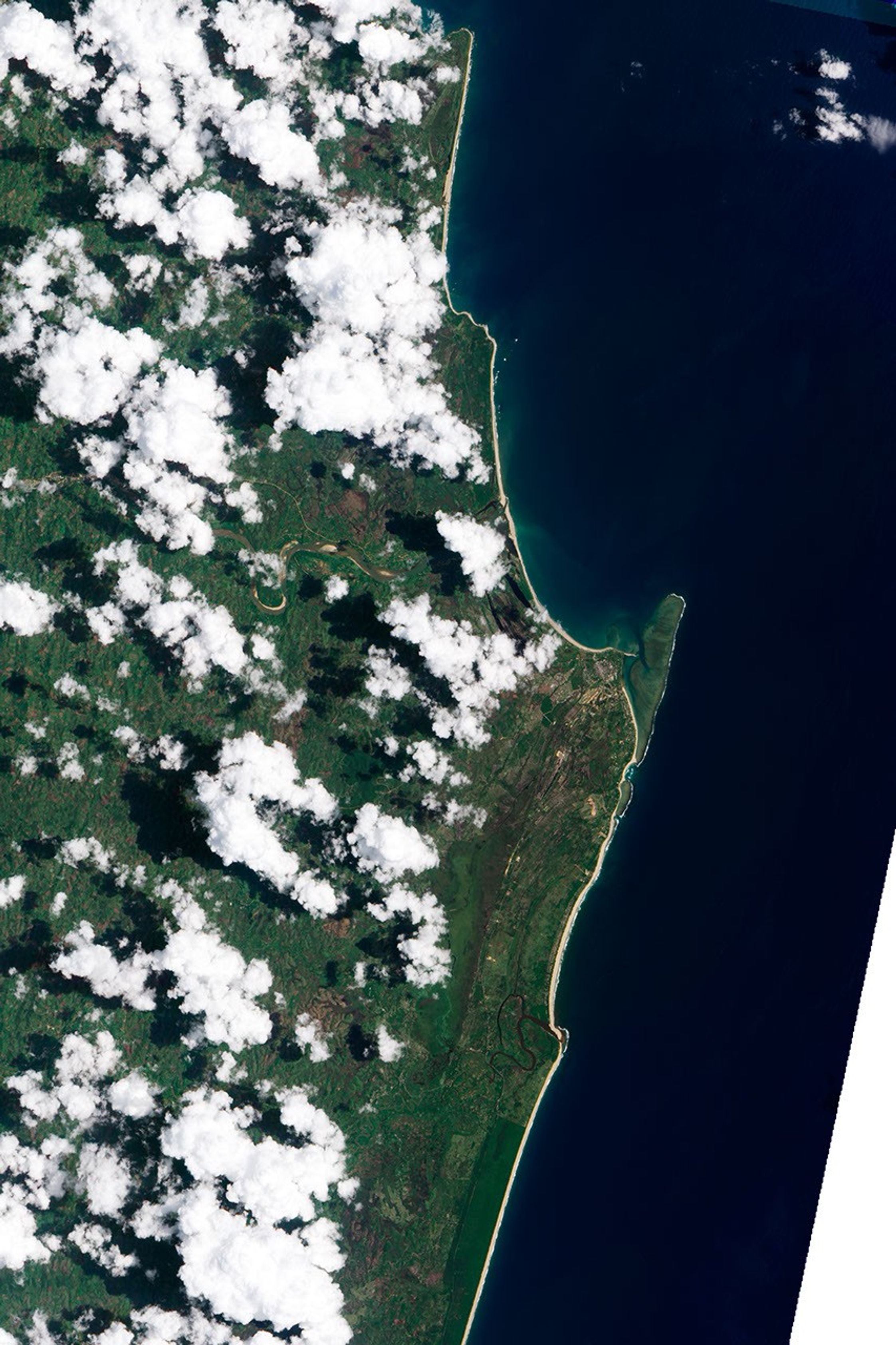 In eastern Madagascar, rivers are typically short and fast-moving, thanks to the area’s stark relief. Madagascar’s highest mountain, for example, is 2,876 meters (9,436 feet) above sea level yet lies just 120 kilometers (75 miles) from the coast. The steep slopes lead to significant erosion, but even compared to the island’s usual runoff rates, the Onibe carried a heavy load of mud and debris in the wake of Giovanna. An ALI image of the same area on February 6 showed virtually no sediment plume at the mouth of the river.