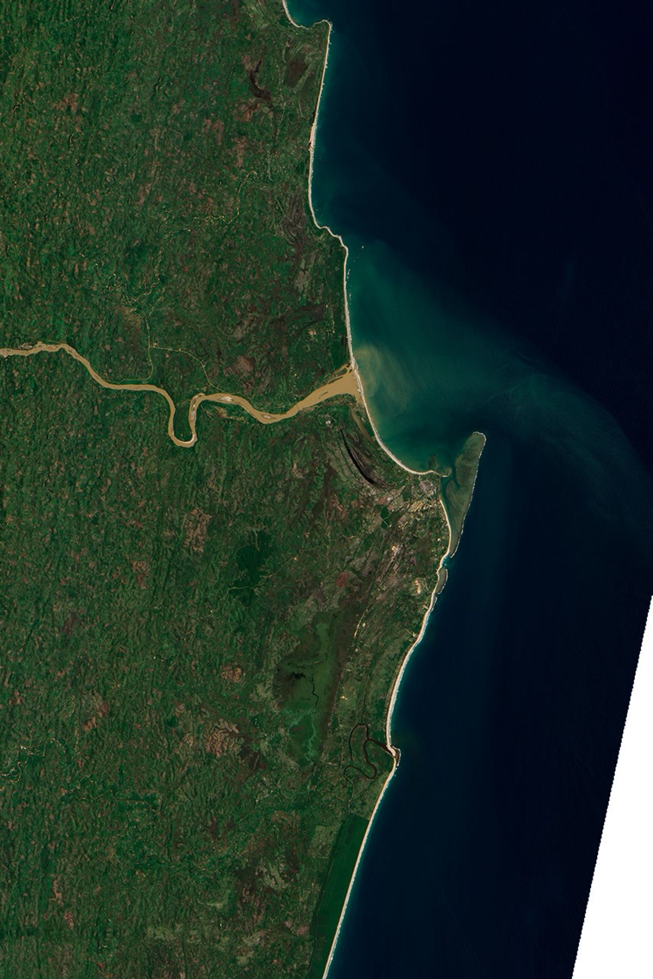 The Onibe River arises in the highlands of Madagascar’s interior and empties into the ocean just north of the coastal town of Mahavelona (also known as Foulpointe). The river lies along the track Giovanna followed when it came ashore. Giovanna’s heavy rains spurred equally heavy runoff into the Onibe River.