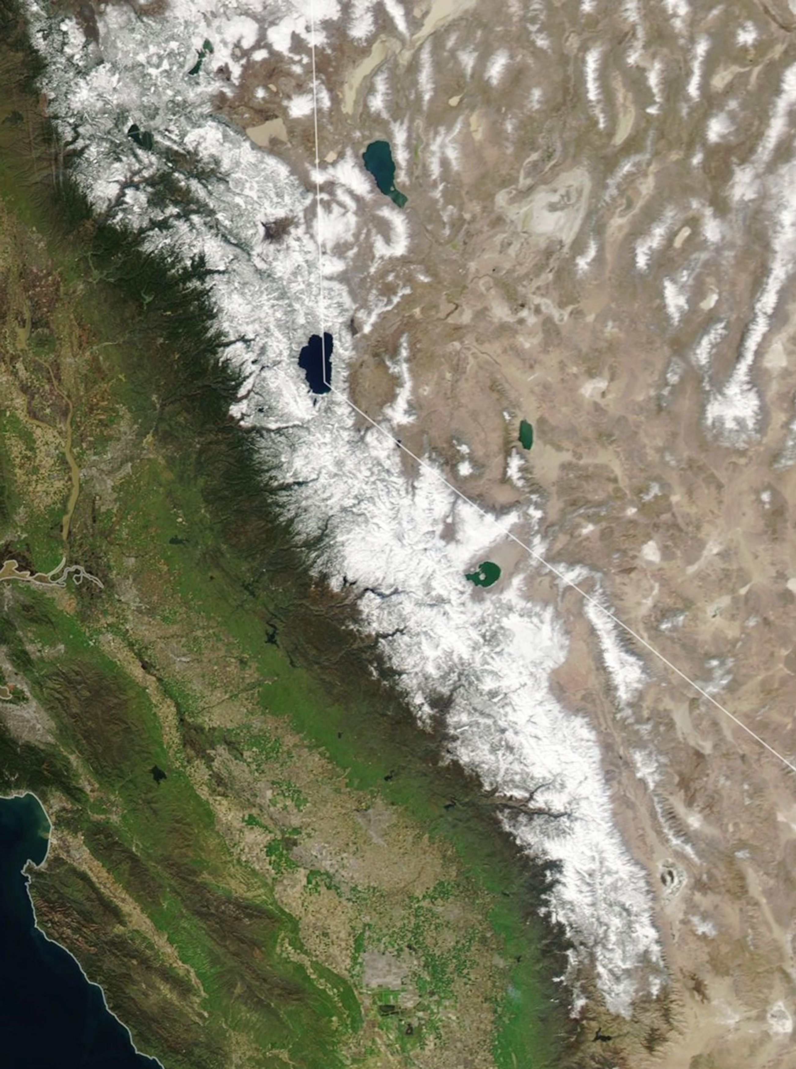 - NASA Earth Observatory (2017, March 3) Abundant Snowpack Blankets the Sierra Nevada.